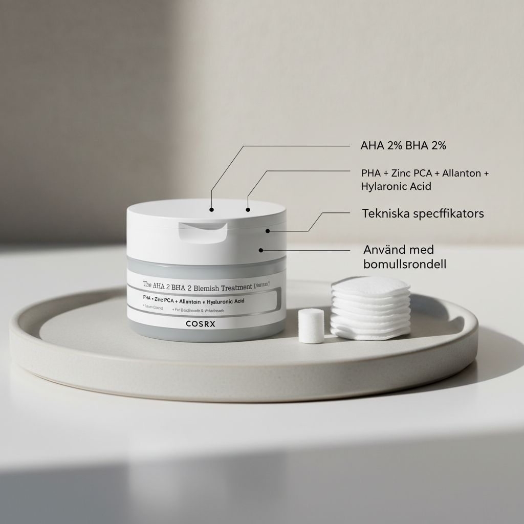 COSRX AHA 2% BHA 2% Blemish Treatment Serum är ett exfolierande serum som kombinerar AHA och BHA för att arbeta både på hudytan och i porerna. Den här typen av formula används ofta vid tilltäpptheter som pormaskar och ojämn textur, men kräver genomtänkt användning för att undvika överexfoliering. Nedan följer praktiska svar om applicering, frekvens, känsla på huden, kombination med andra produkter, när resultat brukar märkas och hur förvaringen påverkar stabiliteten.