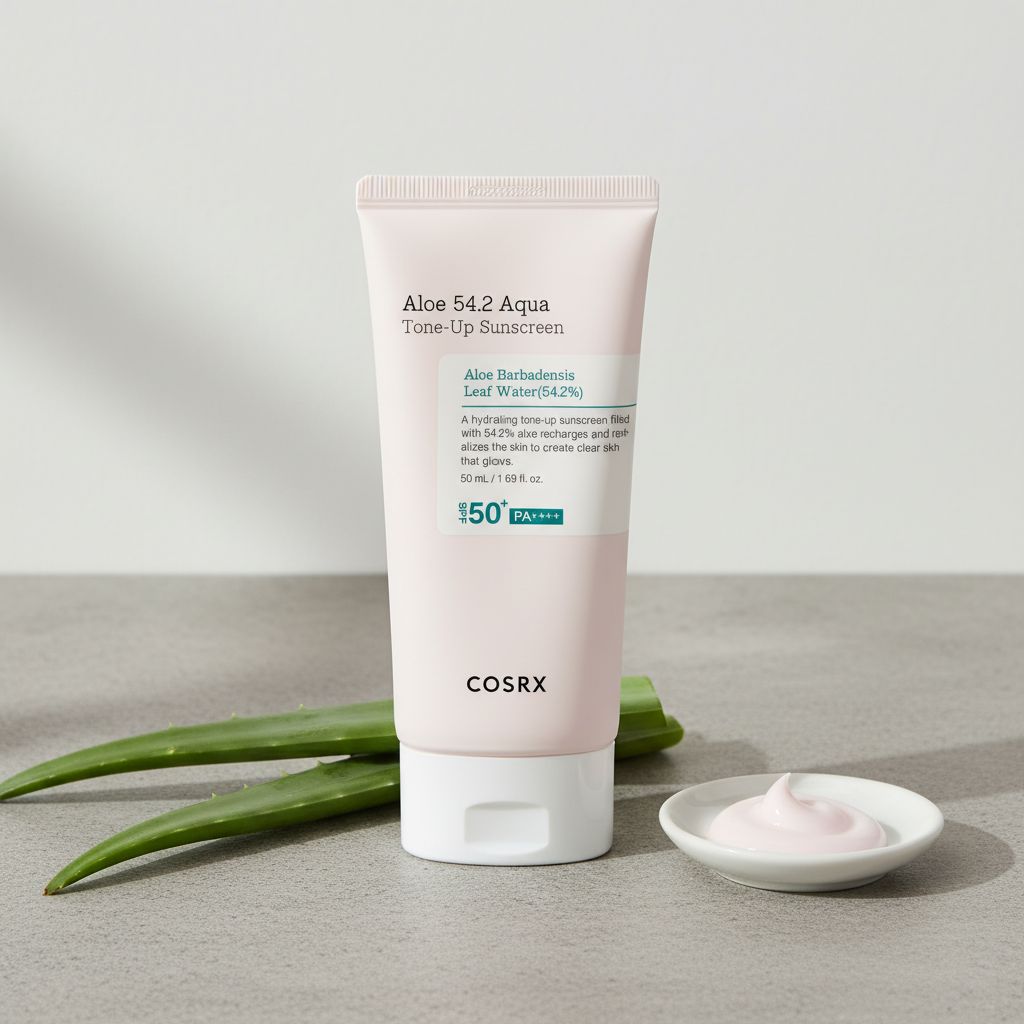 COSRX Aloe 54.2 Aqua Tone-Up Sunscreen SPF 50 är ett tonat solskydd i krämformat som kombinerar hög solskyddsfaktor med en lätt utjämnande “tone-up”-effekt. Eftersom exakta filter, nyansdjup och fullständig INCI-lista inte framgår här, fokuserar svaren på praktisk användning, lager-på-lager och hur man minimerar vanliga problem som rullning, ojämn ton och känslighetsreaktioner.