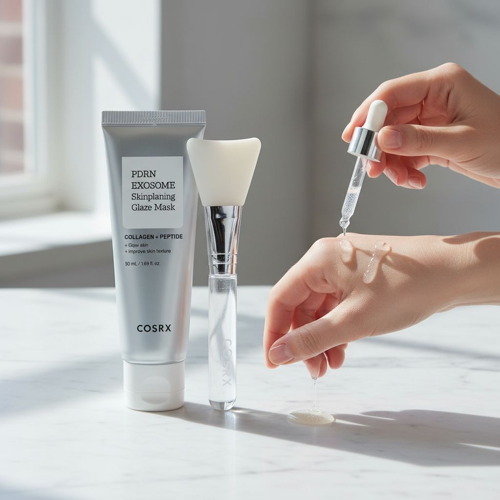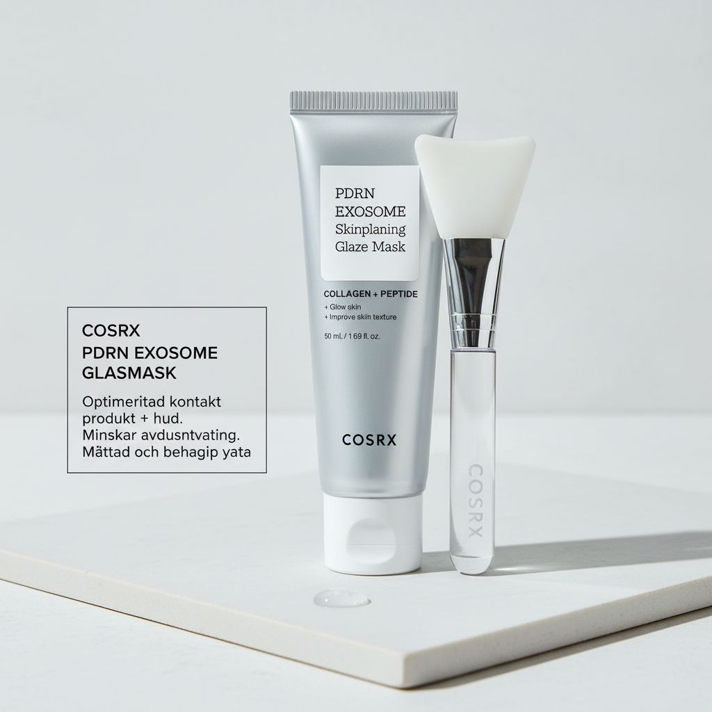 För COSRX PDRN Exosome hudplanering glasmask är det centrala att formatet hjälper till att minska avdunstning under verkningstiden. Det kan förbättra den subjektiva upplevelsen av återfuktning och göra att huden känns mer balanserad direkt efteråt. I praktiken är det ofta en kombination av vattenbaserad essens och filmbildande egenskaper som ger den ”glasiga” finishen som många förknippar med glasmasker.